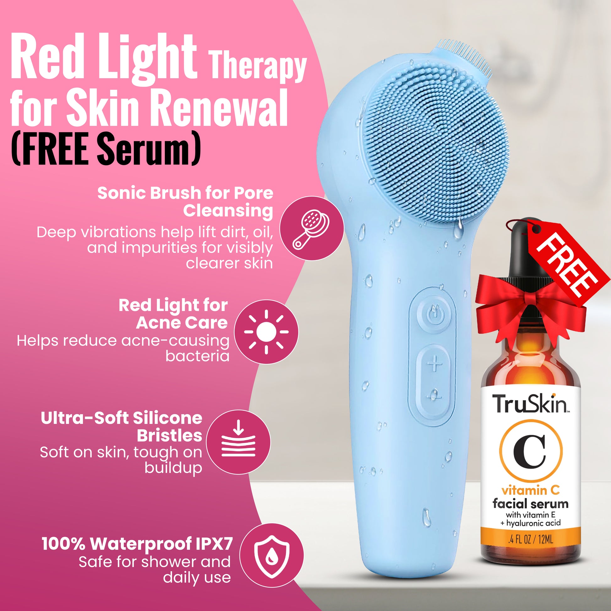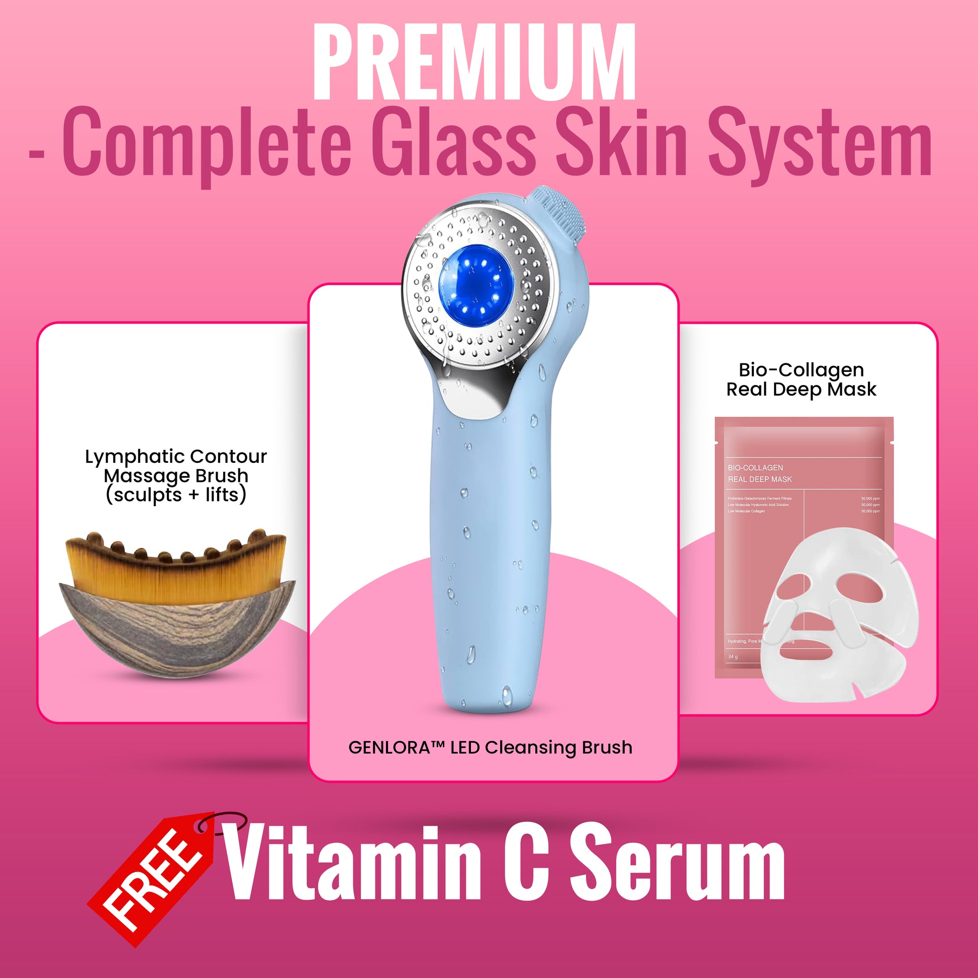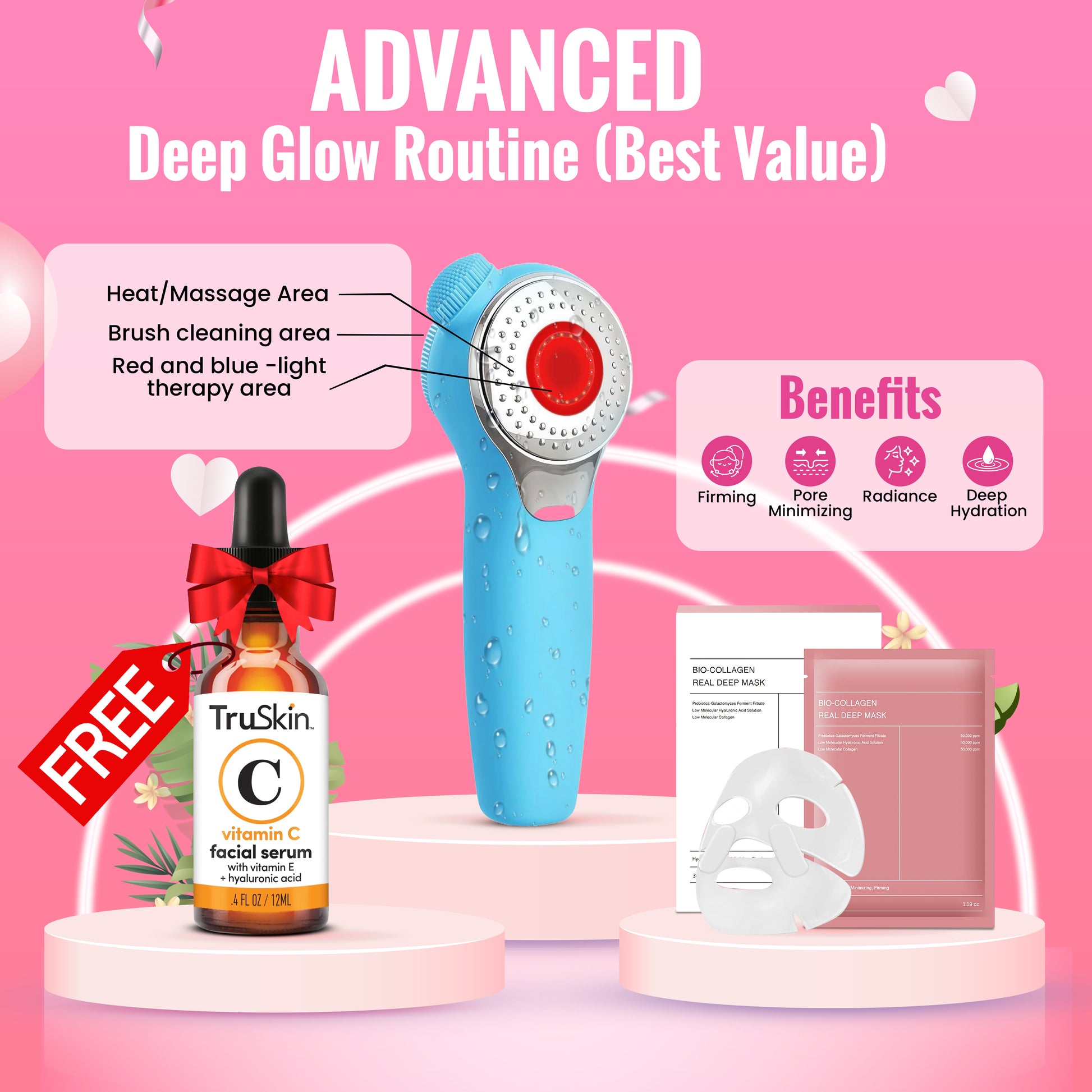 I own several high-end facial cleaners, and this one works just as well! It has red/blue light therapy and a gentle heating feature that feels amazing over sheet masks. It’s soft on the skin and genuinely a great value for the price. Plus, the bundle includes a free Vitamin C serum and a Bio Collagen Mask, which makes it even better. It also has fantastic reviews, so it’s definitely worth trying!